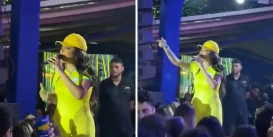 “Se ele não sair daqui agora, eu vou sair do palco”, determinou, após xingar o agressor. “Rala, rala, rala… Enquanto ele não sair da festa, eu não volto para cantar”, reforçou, claramente irritada com a atitude e logo em seguida se retirando do palco.