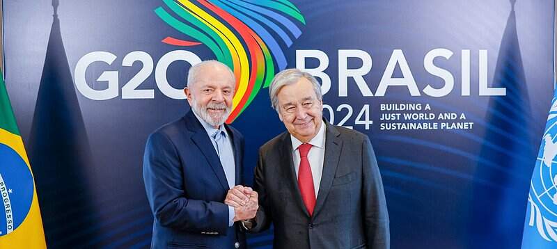 O presidente Luiz Inácio Lula da Silva (PT) iniciou, nesse sábado (16), sua agenda oficial no Rio de Janeiro para a Cúpula do G20, que ocorrerá nos dias 18 e 19 de novembro. O mandatário brasileiro se reuniu com o secretário-geral da Organização das Nações Unidas (ONU), António Guterres. Esta foi a primeira reunião bilateral do G20, que ocorre no Rio de Janeiro. Chefes de Estado de diversos países começam a chegar à capital carioca, e há expectativa de que Lula se reúna com 10 líderes nos próximos dias.