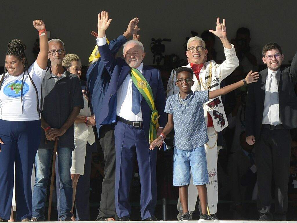 Com a ausência de seu antecessor, Jair Bolsonaro, na passagem de comando, o presidente Luiz Inácio Lula da Silva recebeu, neste domingo (1º), a faixa presidencial de representantes do povo brasileiro. O ato inédito quebrou o suspense em torno de quem entregaria a faixa para o novo chefe do Executivo. Durante a entrega da faixa, Lula se emocionou e, de mãos dadas com os integrantes do grupo, saudou o público presente em frente ao Palácio do Planalto.