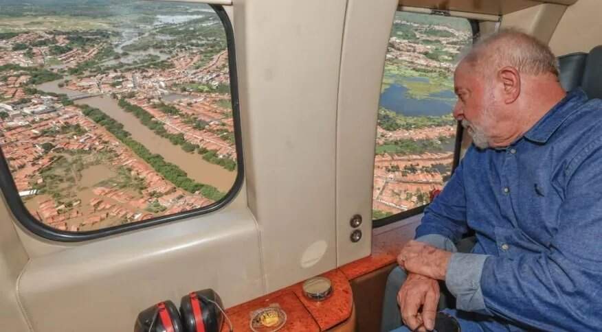 O presidente Luiz Inácio Lula da Silva (PT) sobrevoou, na manhã deste domingo (9), a cidade de Trizidela do Vale – um dos mais prejudicados entre os 64 municípios do Maranhão que enfrentam os impactos de fortes chuvas há semanas.