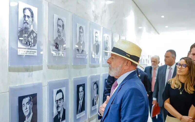 Acompanhado de Valdomiro Luis de Sousa, chefe de gabinete adjunto do Gabinete da Presidência da República, Lula teceu críticas às descrições que acompanham as fotos dos ex-presidentes. As legendas contam apenas com as datas de nascimento e morte.