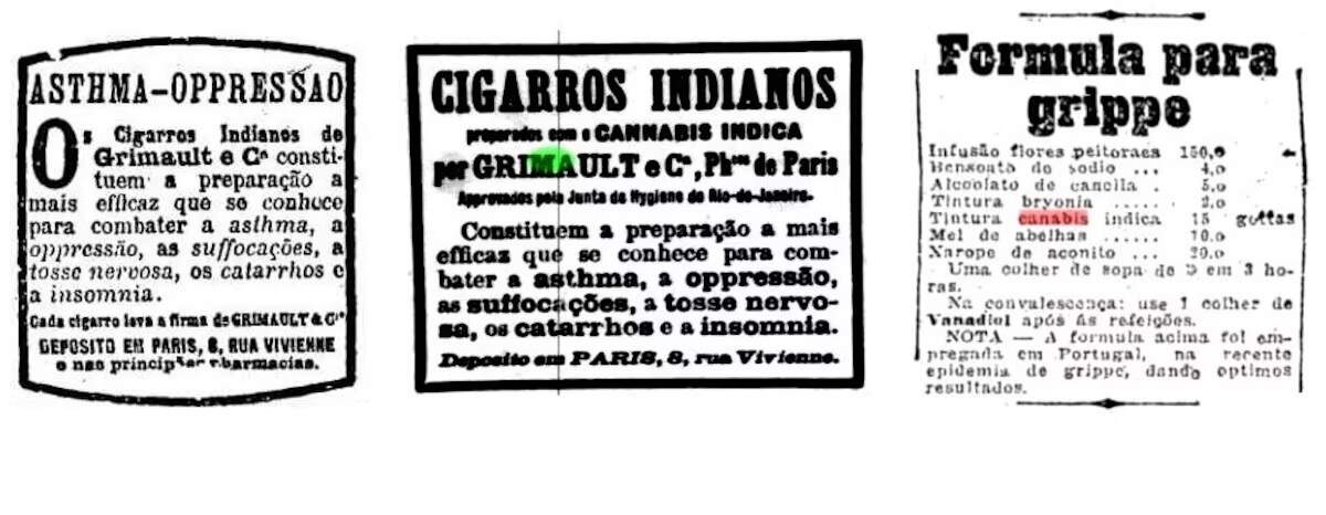As principais indicações eram para problemas respiratórios como asma, bronquite e tosse. Os “cigarros índios” (cigarrettes indiennes) com a substância cannabis indica, do laboratório francês Grimault & Comp, eram vendidos sem restrições e seus benefícios eram veiculados em testemunhais na seção livre, a de pequenos anúncios, do jornal.