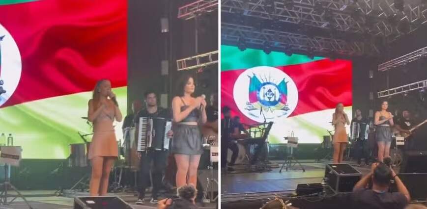 Registros publicados nas redes sociais mostram as cantoras no palco, citando a calamidade no RS e justificando a presença no show.