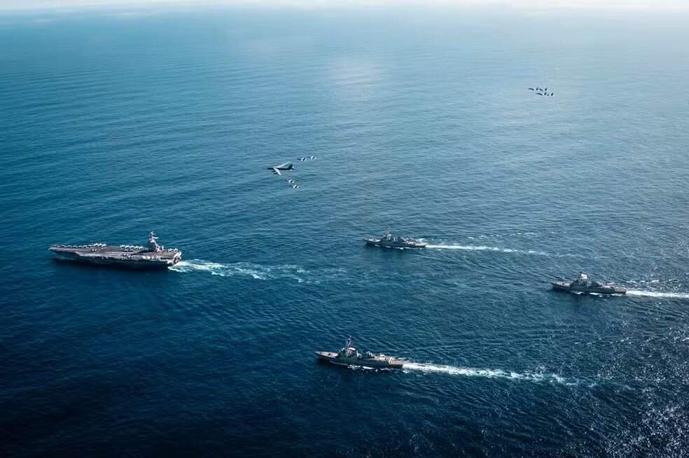 O porta-aviões navega ao lado dos destróieres USS Winston Churchill, USS Mahan e USS Bainbridge. Durante a operação, aeronaves como jatos de ataque e um bombardeiro B-52 Stratofortress sobrevoam a frota.