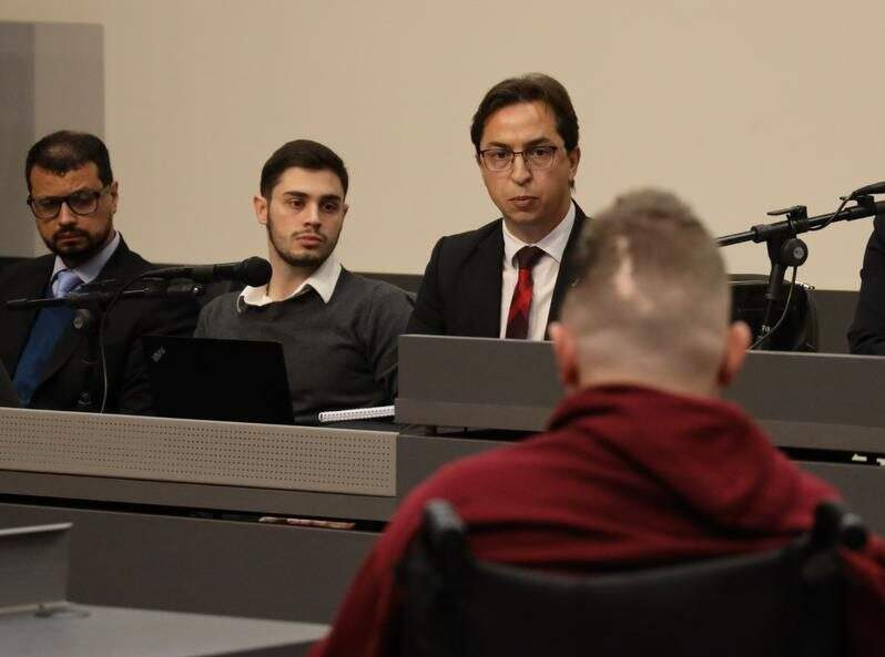 Para a acusação, o réu agiu com dolo eventual, pois ao atingir com violência partes sensíveis do corpo da vítima, como a cabeça, assumiu e aceitou o risco de matar. O promotor responsável sublinhou: