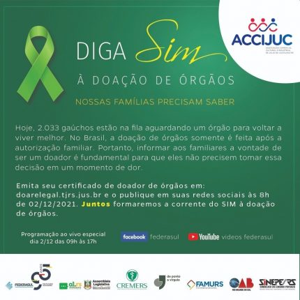 Um mutirão de entidades se prepara, para lançar, na próxima quinta-feira (2), uma grande ação em prol da doação de órgãos. A campanha Diga Sim à Doação de Órgãos, reúne seis entidades e pretende reforçar outra campanha lançada em 2009 pelo Tribunal de Justiça do Rio Grande do Sul (RS) sobre o mesmo tema. Com o mote de que as famílias precisam saber da decisão, a campanha ganha reforço extra com o número de pacientes, que aguardam pelo transplante. A doação perdeu muito com a pandemia e hoje, 2.033 gaúchos esperam um órgão.