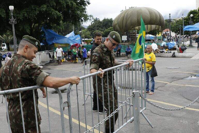 A entrada de carros no QG do Exército foi proibida nesta segunda, mas pedestres ainda circulavam livremente. Uma barreira de agentes de segurança acompanhava a movimentação, com forte policiamento no local.