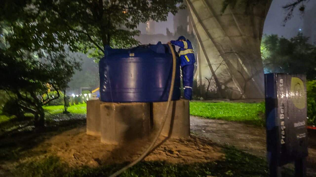O Dmae (Departamento Municipal de Água e Esgotos) instalou no sábado (11) três reservatórios comunitários em locais abastecidos pela Estação de Tratamento de Água Moinhos de Vento, que segue inoperante em razão das inundações.