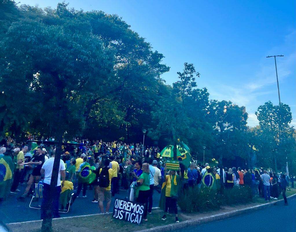 Manifestação em Porto Alegre reuniu centenas de pessoas no Parcão, em repúdio às prisões após os atos de 8 de janeiro, a cassação do deputado Deltan Dallagnol (Podemos-PR), e a indicação do advogado Cristiano Zanin para o Supremo Tribunal Federal (STF).
