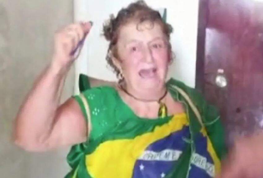A imagem de Maria de Fátima viralizou após vídeo em que ela é exaltada: “Dona Fátima, de Tubarão, Santa Catarina, de 67 anos, tá quebrando tudo!”. Na sequência, ela dispara: “Vamos para a guerra. Vou pegar o Xandão agora!”.