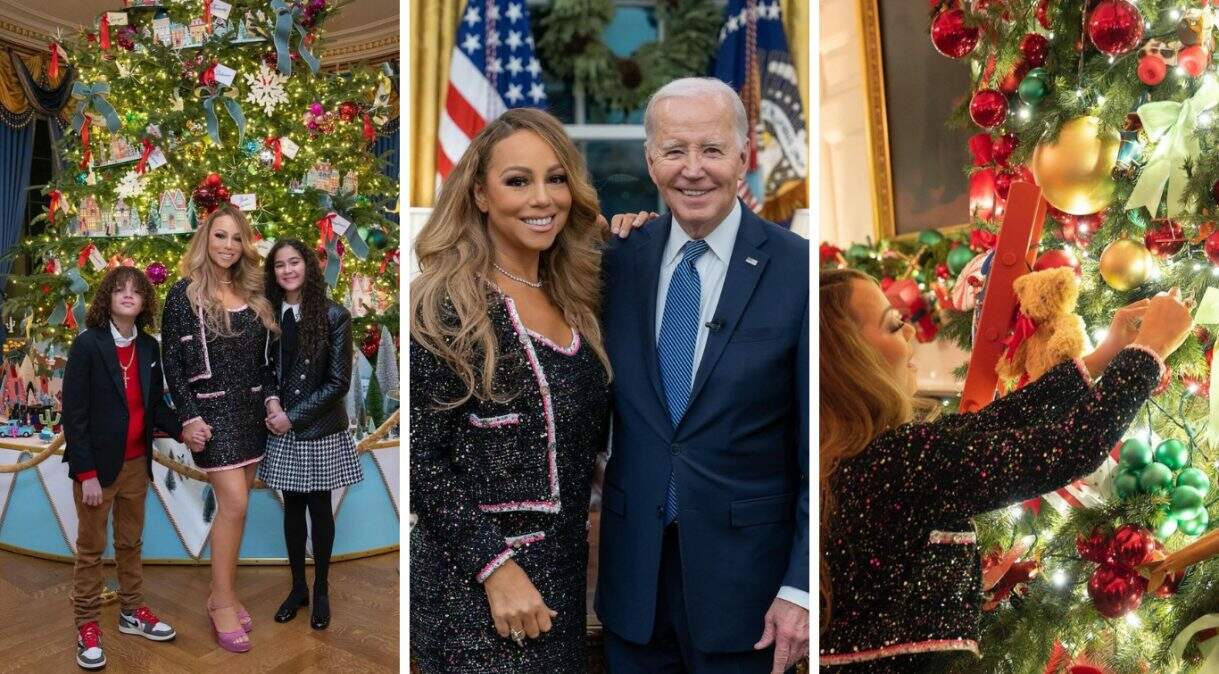 Ao lado de seus filhos gêmeos, Mariah Carey fez uma visita especial na última semana. A cantora, que sempre “descongela” para o Natal, compartilhou fotos ao lado do presidente norte-americano Joe Biden e da vice-presidente do país, Kamala Harris. O encontro aconteceu na Casa Branca, a residência oficial do governo, que estava decorada para as festividades de final de ano.