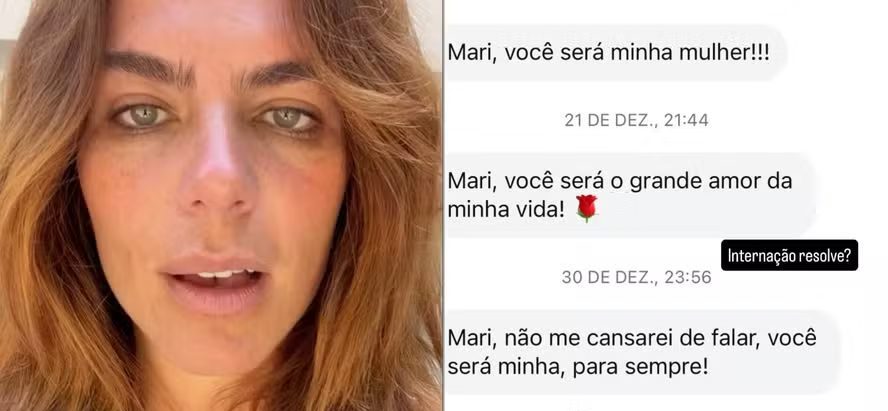 A captura de tela mostra mensagens recebidas desde o fim de 2025 até a última segunda-feira (6). Apesar das diversas tentativas de contato, a imagem mostra que Goldfarb não respondeu nenhuma delas. O homem mandou em pelo menos três ocasiões a mensagem “Mari, você será minha mulher!”. Outros envios foram com os textos “Mari, você será o grande amor da minha vida”, “Não me cansarei de falar: você será minha para sempre” e “Eu serei o homem que te fará feliz para sempre”.
