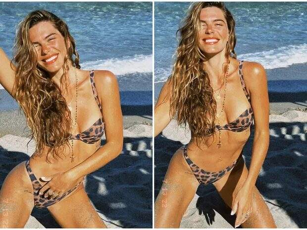 “Ao mar”, legendou Mariana em italiano. Nas imagens, ela usa um biquíni com estampa de oncinha e acessórios como um terço no pescoço e anéis com pedras nos dedos, além de estar com as pernas à milanesa por causa da areia.