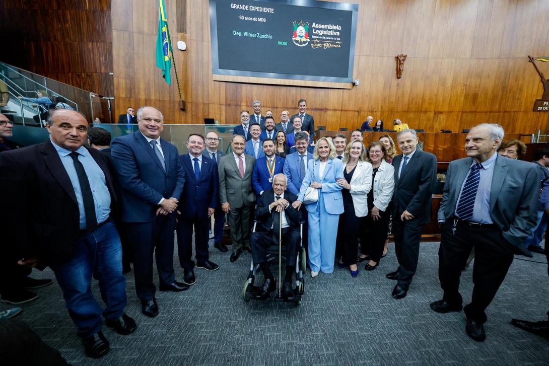 A sessão contou com a presença de Gabriel Souza, do deputado federal Márcio Biolchi, dos ex-governadores Pedro Simon e José Ivo Sartori, além de lideranças como Giovani Feltes, secretário-geral do MDB/RS, e representantes do Ministério Público e da Defensoria Pública. Em apartes, parlamentares de diferentes partidos reconheceram o papel histórico do MDB na redemocratização e na construção de políticas públicas.