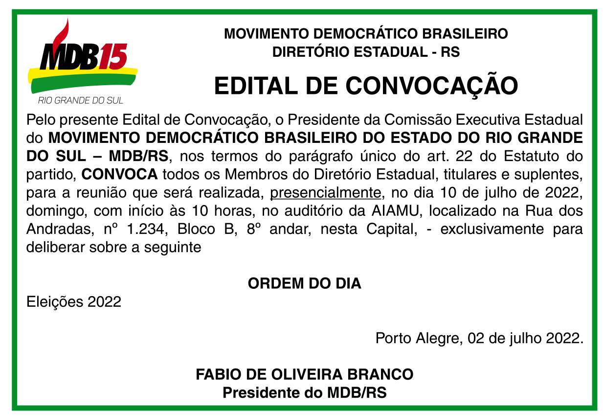 No fim de junho, a executiva nacional do MDB aprovou um indicativo a favor da aliança com o PSDB na eleição para o governo do Rio Grande do Sul. “A chapa única é fundamental para o projeto em torno de Simone Tebet”, justificou a executiva, em seu perfil no Twitter.