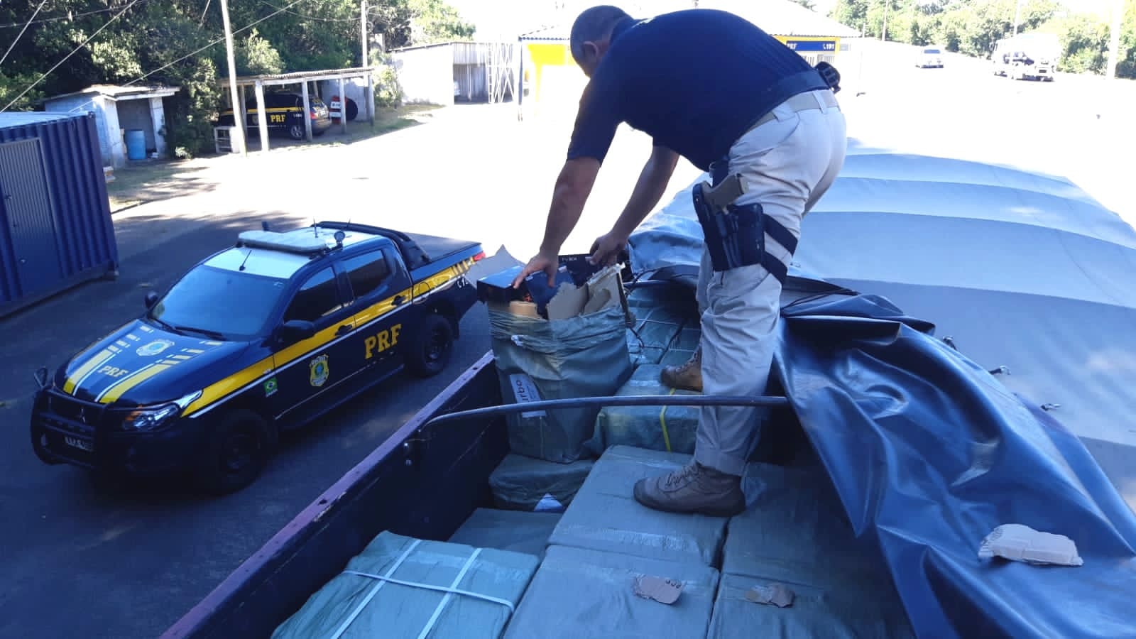 Durante fiscalização na rodovia, os policiais deram ordem de parada ao motorista de uma carreta com placas de Santana do Livramento, na Fronteira Oeste. Ele desobedeceu e seguiu em fuga por alguns metros, até parar o veículo perto de uma lavoura de soja e fugir correndo junto com um passageiro.