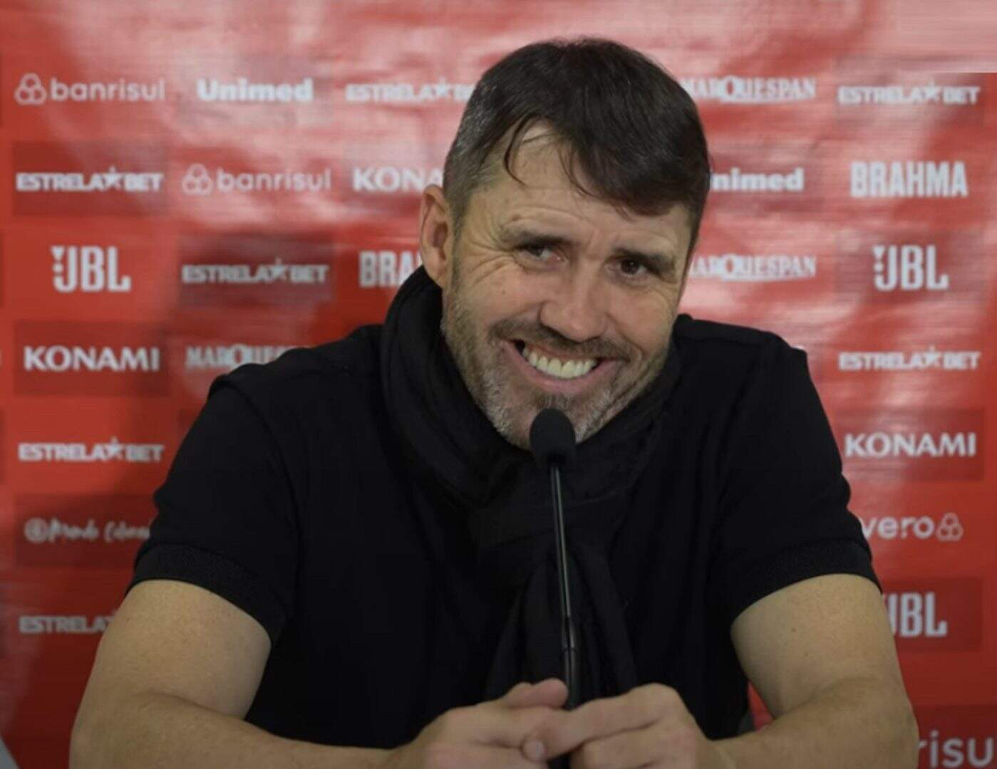 Em entrevista coletiva após a vitória do Inter por 1 a 0 no Grenal nº 442, disputado no sábado (22) pelo Campeonato Brasileiro, o técnico Eduardo Coudet concedeu a seus comandados todos os louros pelo resultado. Essa foi a terceira vez seguida em que o Colorado levou a melhor sobre o arqui-rival desde que o argentino voltou a treinar o time, quase um ano atrás, após uma primeira passagem pelo estádio Beira-Rio em 2020.