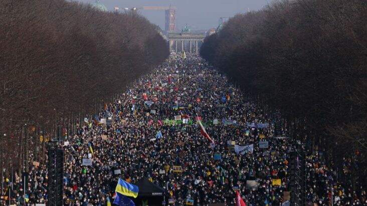 As manifestações aconteceram depois do chanceler da Alemanha, Olaf Scholz, afirmar ao parlamento alemão, na manhã deste domingo (27), que destinará mais de 2% do Produto Interno Bruto (PIB) para defesa e que irá entregar armamentos para que a Ucrânia se defenda do ataque russo.
