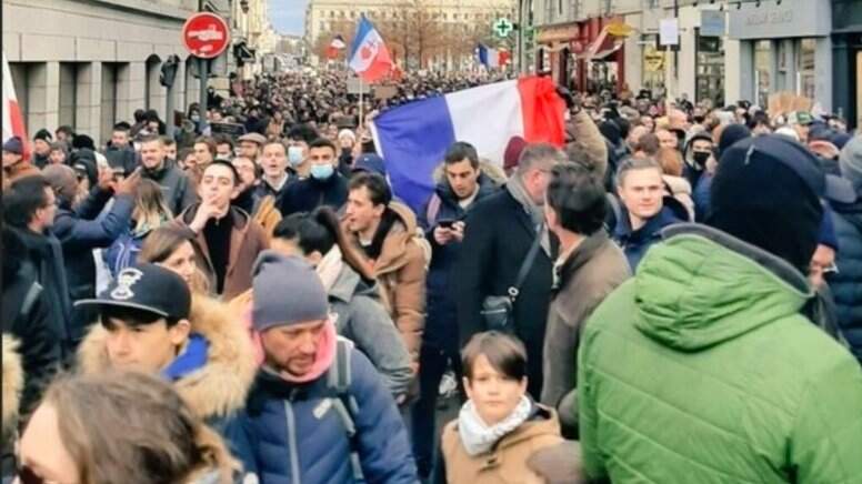 O projeto de lei do passaporte vacinal, aprovado pelos deputados franceses, deve ser discutido no Senado nesta semana. Em Lyon, uma pequena multidão de manifestantes de todas as idades, onde poucos usavam máscaras, se reuniu em um ambiente descontraído na Place Bellecour, no Centro da cidade. Entre eles alguns “coletes amarelos”, bandeiras tricolores da França e um cartaz vermelho do sindicato CGT. Slogans denunciando um “apartheid social” e vaias contra o presidente Emmanuel Macron e seu primeiro-ministro pontuaram a manifestação.