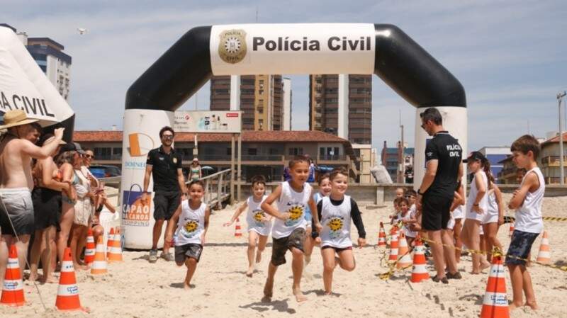 A Polícia Civil promoveu, na manhã de domingo (02), a minirrústica infantil na beira da praia de Capão da Canoa, no Litoral Norte gaúcho. A atividade reuniu cerca de 45 crianças de 3 a 12 anos.