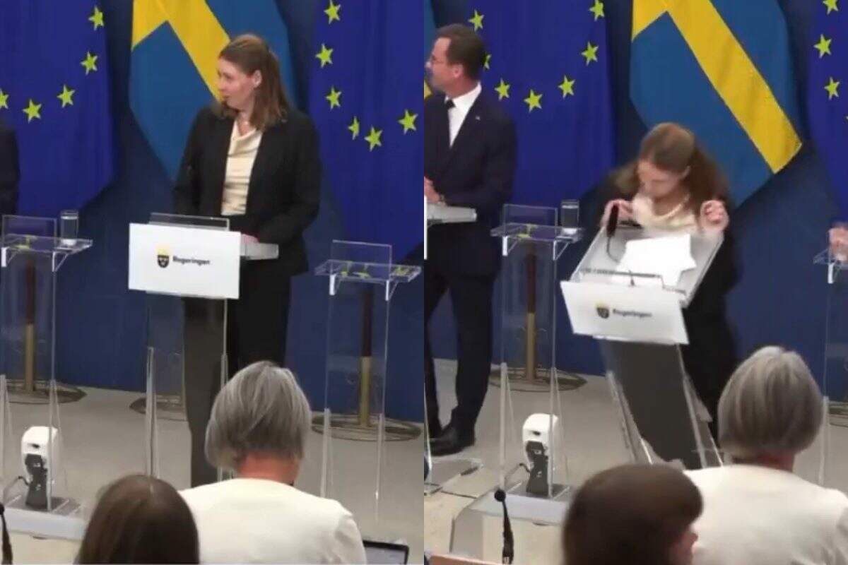 Em nota, o premiê sueco Kristersson deu boas-vindas a nova ministra e afirmou estar feliz que ela esteja se sentindo bem “após uma primeira coletiva de imprensa um tanto dramática”.