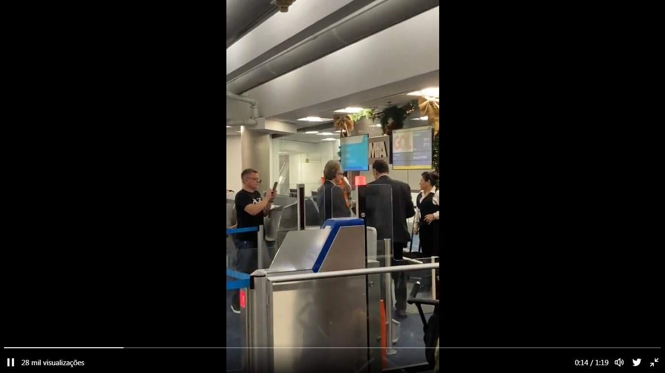 Os manifestantes vaiaram e xingaram o ministro e entoaram o coro “sai do voo”, que acabou embarcando e já está no Brasil.