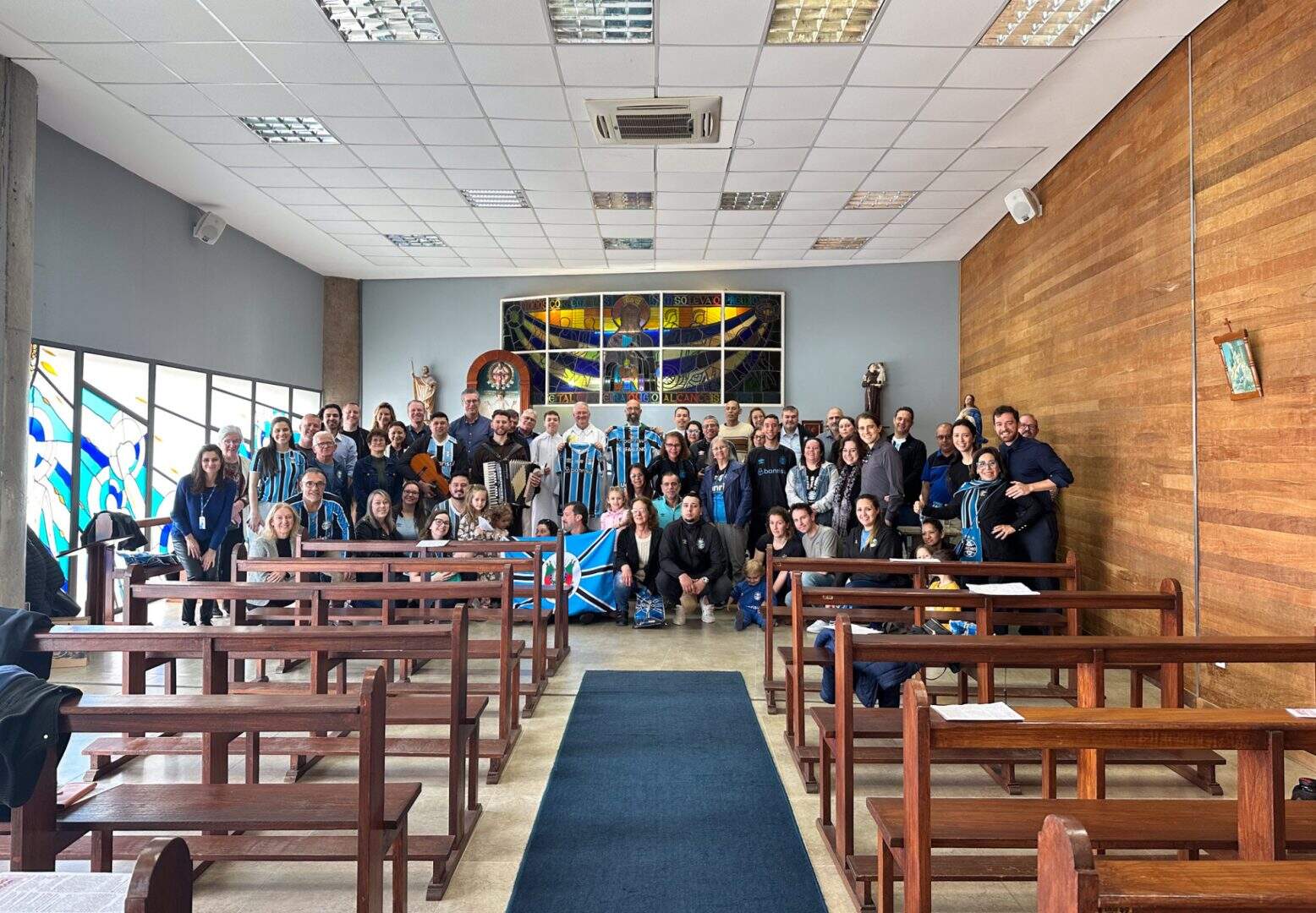 No final da manhã deste domingo (15), ocorreu a missa em homenagem ao aniversário do Grêmio. A celebração aconteceu na Capela Nossa Senhora de Medianeira, na Arena, que estava fechada a quase cinco meses por conta das enchentes.