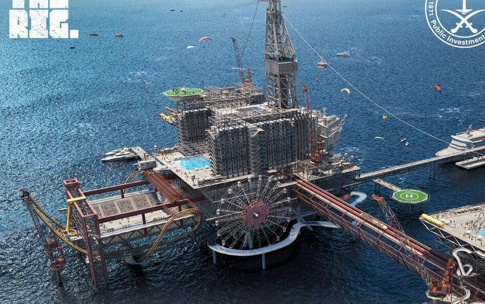Chamado “The Rig” (“A Plataforma”, o projeto anunciado pelo Fundo de Investimento Público (PIF, na sigla em inglês) da Arábia Saudita na última sexta, tem previsão de ocupar uma área flutuante de 150 mil m² no mar, mas ainda sem data prevista de inauguração.