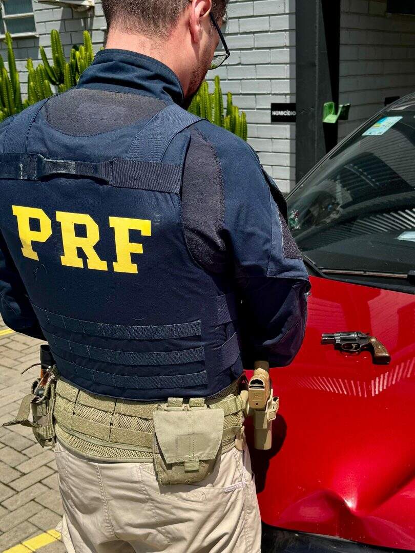 O condutor afirmou aos policiais que não obedeceu à ordem de parada porque o carro estava com o licenciamento vencido. Durante a revista no veículo, os agentes localizaram um revólver calibre .38 e 24 munições.
