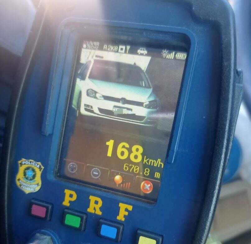 A PRF (Polícia Rodoviária Federal) flagrou um motorista dirigindo a 168 quilômetros por hora na BR-293, no trecho entre Candiota e Bagé, na Região da Campanha, na tarde de domingo (16).