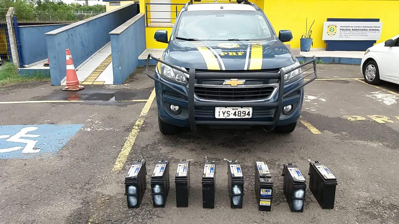 Na tarde deste sábado (19), na BR-448, Policiais Rodoviários Federais prenderam um homem que transportava oito baterias furtadas de antenas telefônicas.