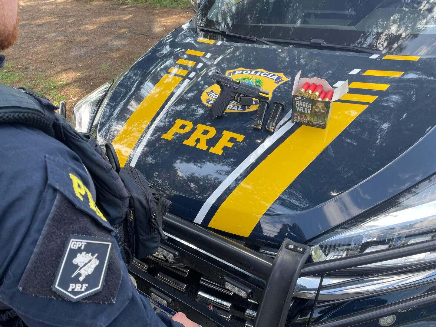 Na manhã desta quarta-feira (23), a PRF (Polícia Rodoviária Federal) prendeu um homem que portava uma pistola calibre .380 e dezenas de munições. A abordagem ocorreu na BR-287, em Santa Maria, na Região Central do Estado.