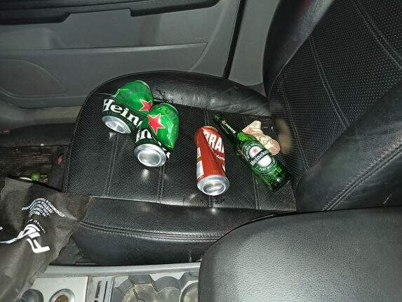 Bebidas alcoólicas foram encontradas dentro do carro do homem que causou o acidente. (Foto: PRF/Divulgação)