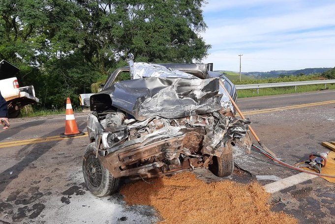Após a colisão frontal, a S10 teve sua traseira colidida por uma Frontier (placas de Sede Nova), que seguia logo atrás da S10.