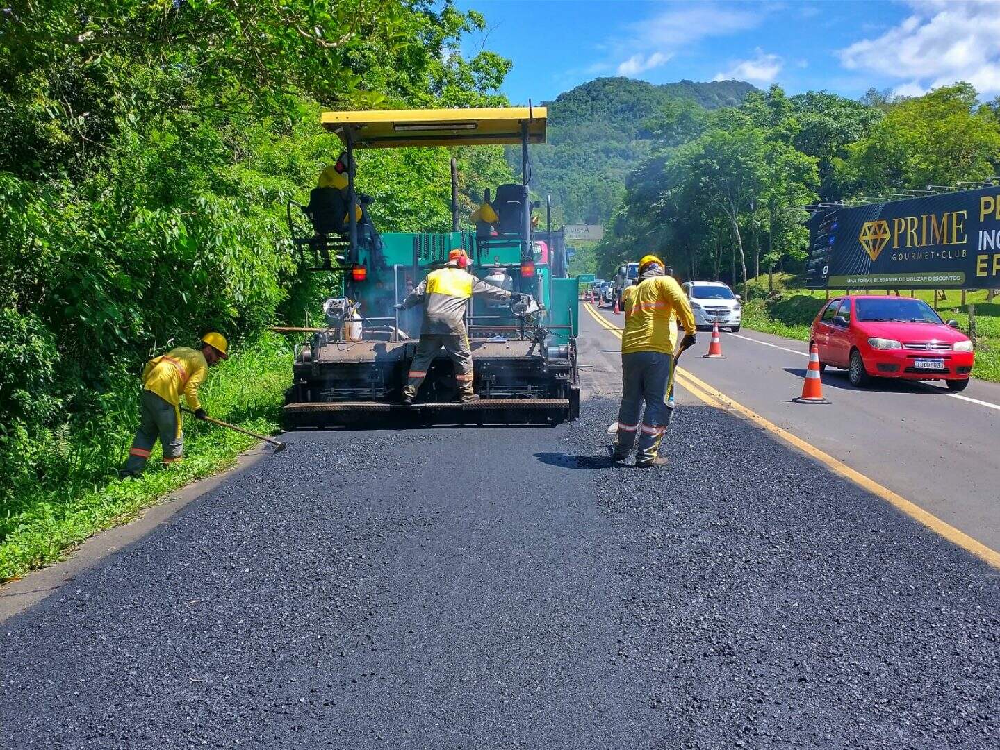 A presença de trabalhadores e máquinas na pista pode ocasionar bloqueios de faixas e, consequentemente, lentidão ou retenção de veículos.