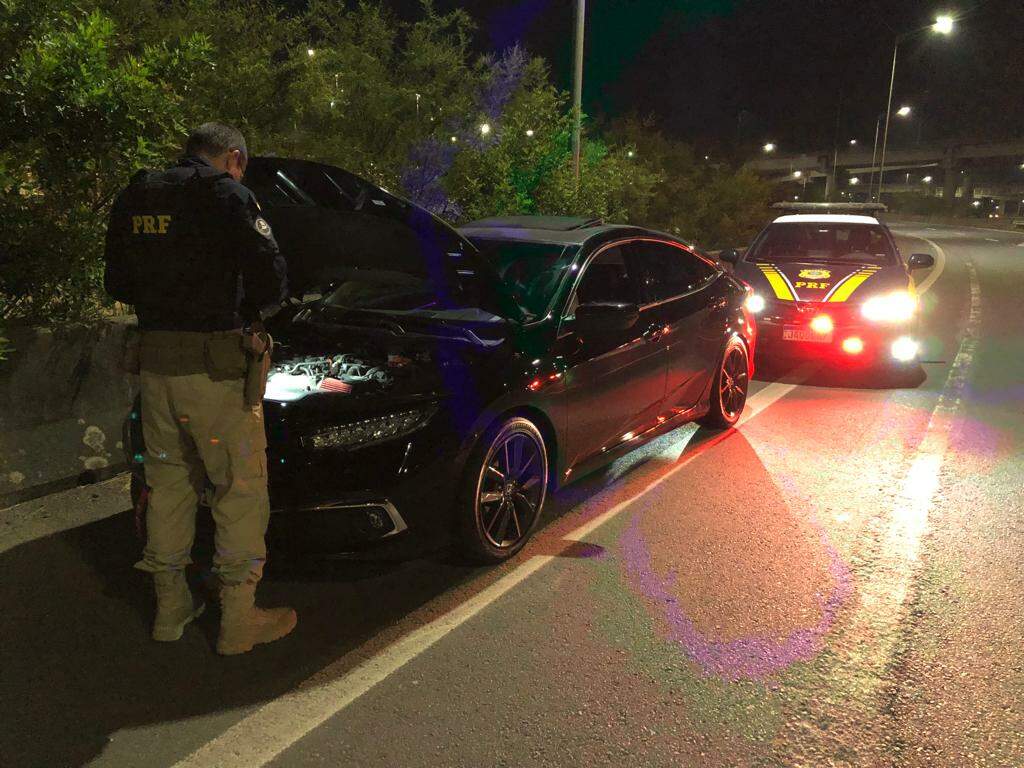 Ao chegarem perto da Freeway, os veículos se dispersaram para fugir das viaturas da PRF – alguns seguindo para a Capital e outros em direção ao litoral. Dois carros foram interceptados: um Audi, com placas do Rio de Janeiro, e um Honda Civic, emplacado em Canoas. O primeiro veículo estava com uma das placas encoberta para escapar da fiscalização. O outro tinha o motor modificado para aumentar a potência.