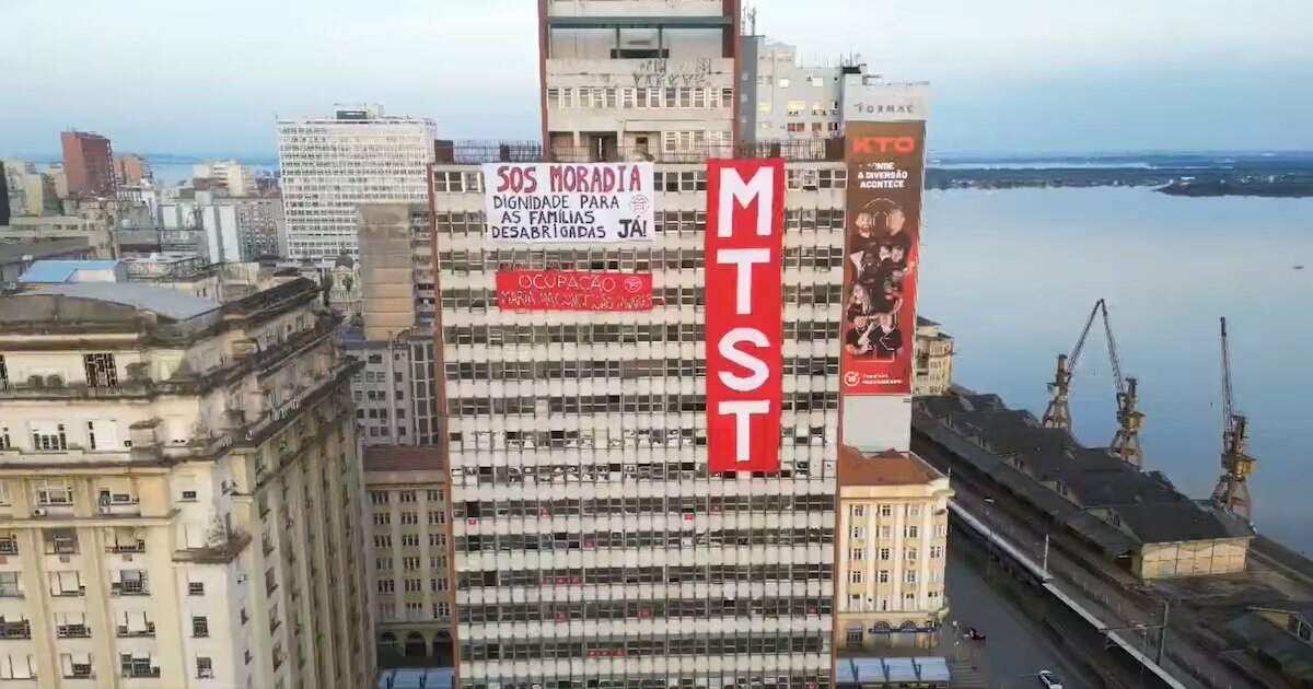 “O MTST ocupa esse prédio para demonstrar que moradia popular digna pode ser construída nesses imóveis que não cumprem a função social. E, tem que ser através da moradia construída pelo Minha Casa Minha Vida”, diz a coordenadora nacional do MTST, Cláudia Ávila. De acordo com o último balanço da Defesa Civil do RS, 18.854 pessoas estão em abrigos e 423.486 estão desalojados por causa das enchentes em todo o Estado.