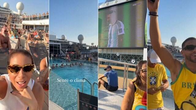 “Não adianta, onde tem brasileiro não existe torcida para a Argentina”, disse a influenciadora em um dos vídeos compartilhados no Instagram mostrando os bastidores na piscina do hotel. Clima de provocação e rivalidade para os próximos jogos aparecem no vídeo legendado por Isabelle, escrito “sente o clima”.