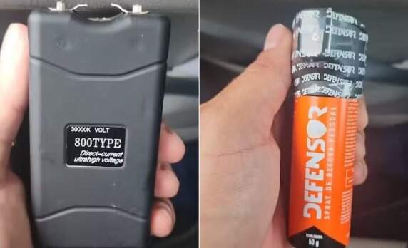 Ao chegarem ao local, os agentes “colheram informações sobre as características da autora” e a encontraram dentro de um carro. Durante a abordagem veicular, os policiais encontraram um spray de pimenta e uma máquina de choque.