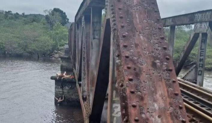 A mulher e o namorado estavam em uma ponte de ferro centenária, por onde passa um trilho de trem, e da qual só se tem acesso por trilha, quando ocorreu a queda de cerca de 5 metros de altura.