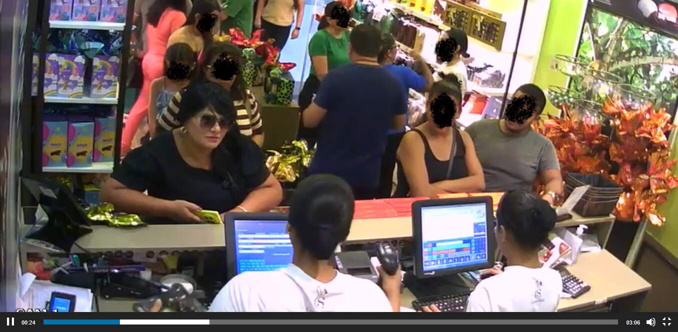 Imagens de uma câmera de segurança mostram Jordélia disfarçada com uma peruca em uma loja onde comprou o chocolate. O vídeo foi gravado na tarde de quarta-feira (16), mesmo dia em que o doce foi entregue à família.