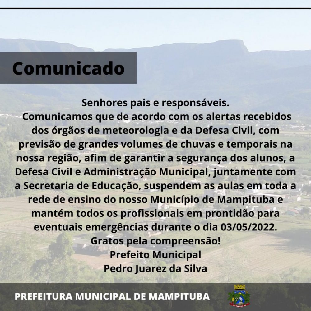 Confira abaixo um comunicado da prefeitura de Mampituba: