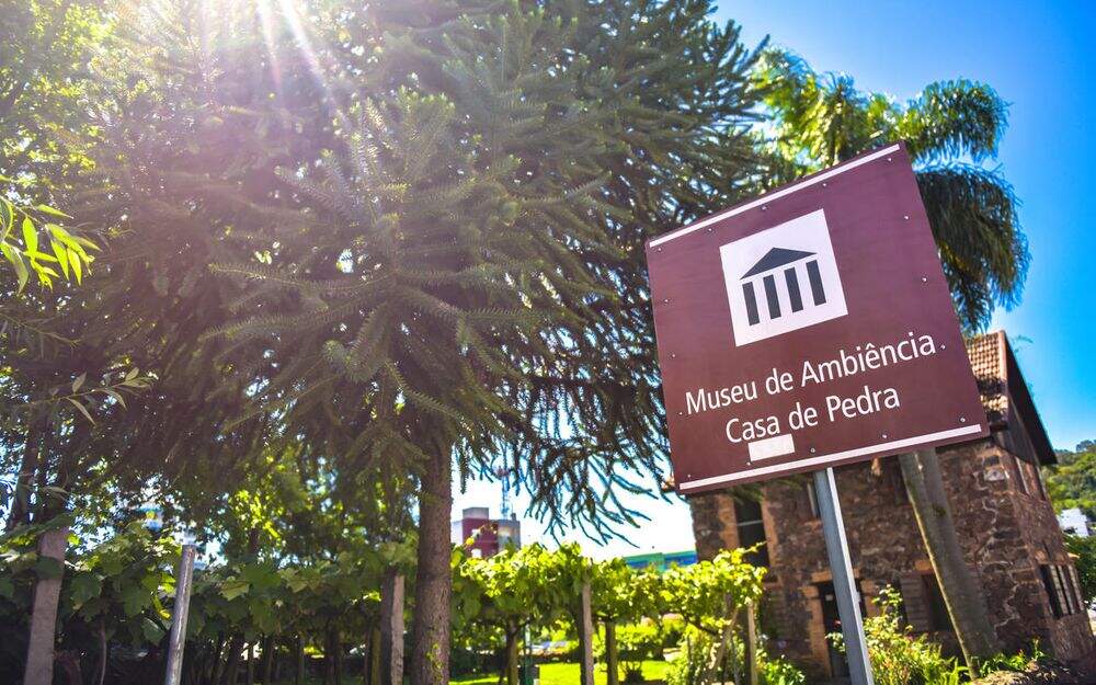 Museu Ambiência Casa de Pedra está localizado na rua Matteo Gianella, nº 1.513, bairro Santa Catarina.
