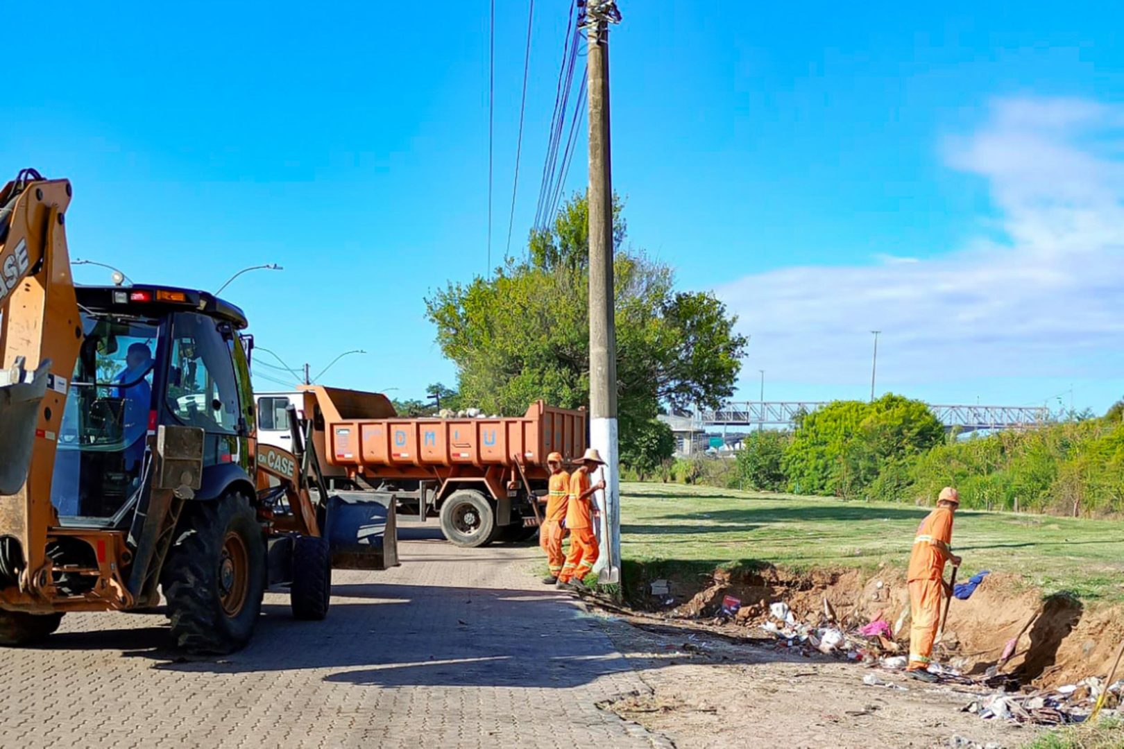 Uma equipe formada por seis garis atuou no mutirão para a retirada dos pontos com acúmulo de sujeira na localidade. O trabalho contou com o auxílio de sete caminhões e duas retroescavadeiras.
