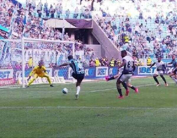 Já na reta final da primeira etapa, o camisa 9 do Timão caiu na área após disputa de bola com Geromel. O árbitro não marcou pênalti no primeiro momento, mas foi chamado para conferir o lance no VAR. A penalidade foi confirmada.