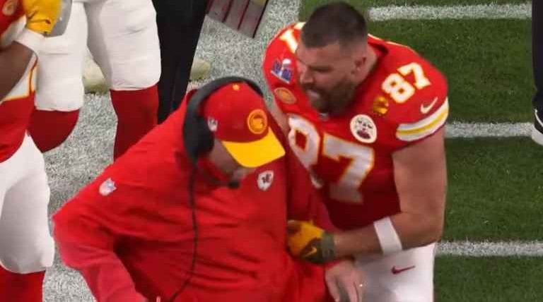 Travis Kelce, tight end do Kansas City Chiefs e conhecido também por namorar a cantora Taylor Swift, teve um ataque de fúria durante o duelo com o San Francisco 49ers, pelo Super Bowl, neste domingo, e agarrou o braço do seu próprio treinador, Andy Reid, quase derrubando-o no chão. O jogador estava exaltado e gritou com o técnico de 65 anos, conforme mostrou a transmissão televisava da grande final da NFL.