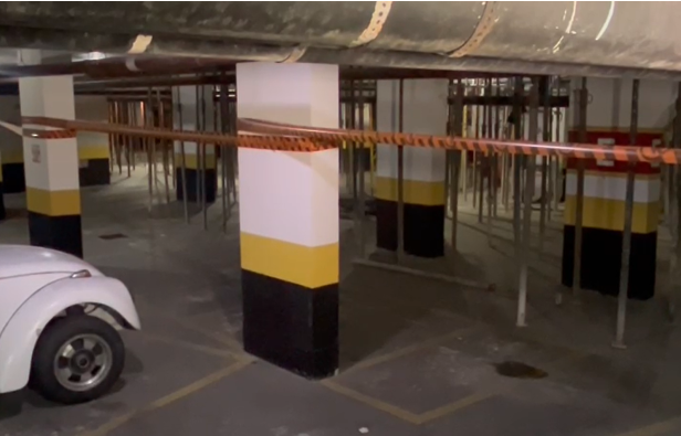 No inicio da tarde, o prédio residencial com 133 apartamentos foi evacuado depois que técnicos da Defesa Civil identificaram um colapso estrutural em três colunas da edificação. O problema foi constatado no subsolo. Não há feridos.