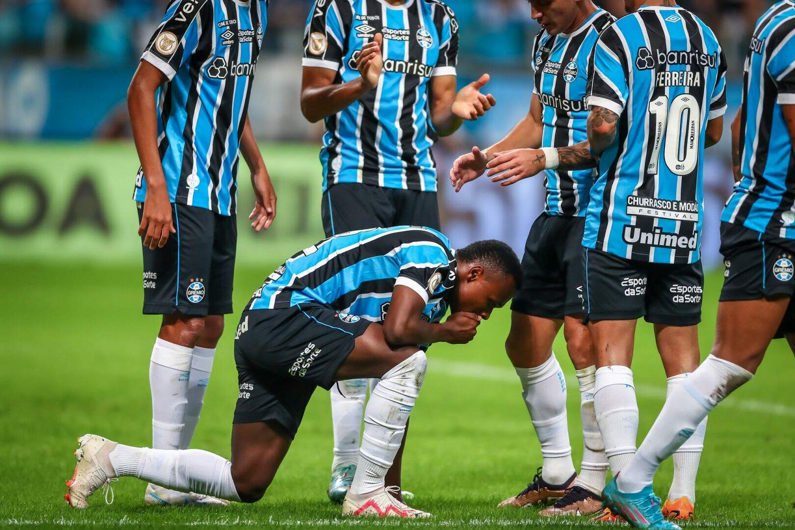 O atacante foi muito elogiado pelo técnico Renato Portaluppi em sua entrevista coletiva. Para o treinador, o garoto teu um futuro brilhante pela frente.