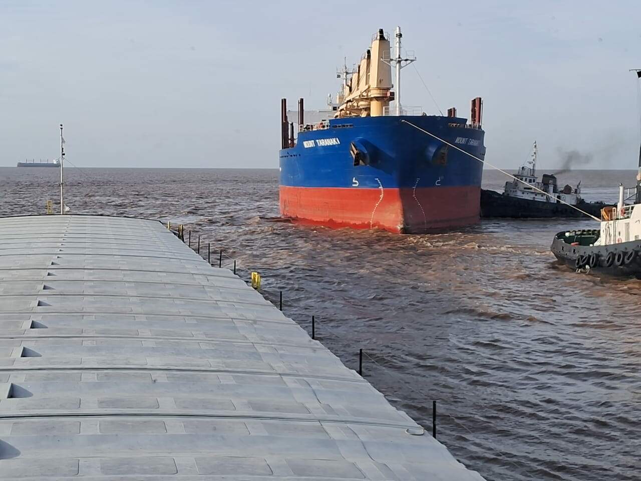 O navio graneleiro Mount Taranaki, que navega sob a bandeira de Hong Kong, continua encalhado nesta sexta-feira (1º) no Canal de Itapuã, em Viamão, na Região Metropolitana de Porto Alegre.