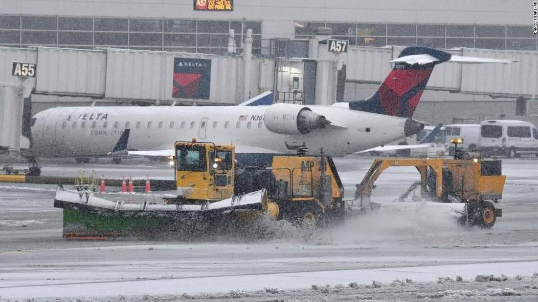 Mais de 14,4 mil voos domésticos nos EUA atrasaram ou foram cancelados na manhã deste sábado, a maioria deles região de Nova York, incluindo os aeroportos internacionais John F. Kennedy, LaGuardia e Newark Liberty. Os dados são do site de rastreamento FlightAware. Segundo a plataforma, outros 2,1 mil voos internacionais com partida ou chegada previstas nos EUA foram cancelados.